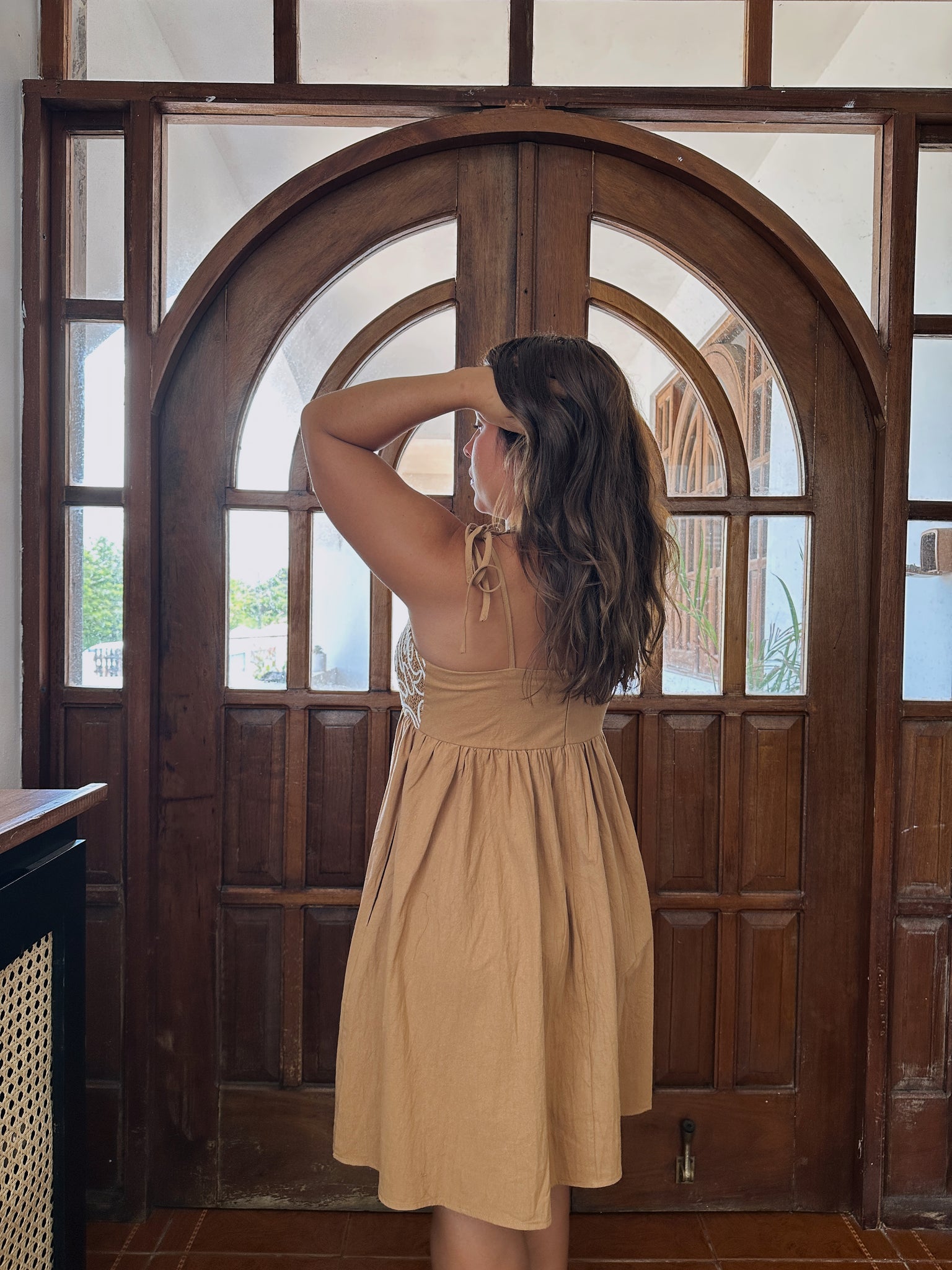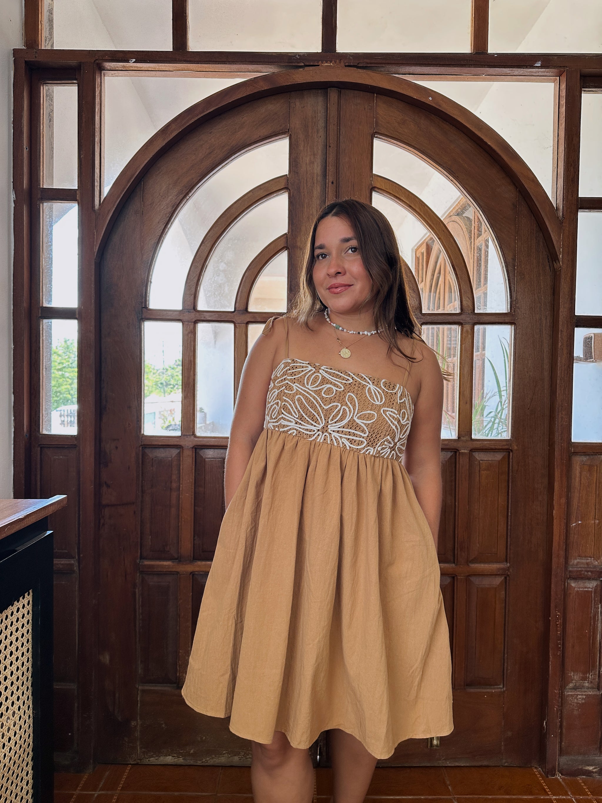 ABSTRACT EMBROIDERY DETAIL BODICE MINI DRESS
